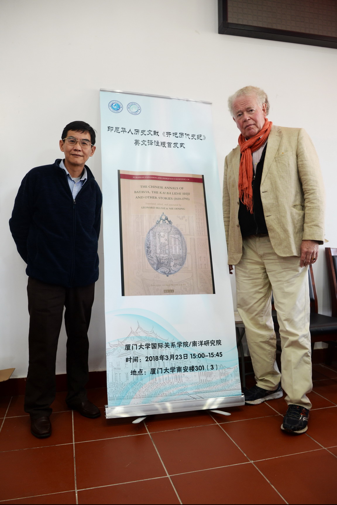 3月23日下午,印尼华人历史文献《开吧历代史纪》(下文简称《史纪》)英文译注版首发式在东南亚研究中心/南洋研究院举行。该译注本由荷兰莱顿大学包乐史教授、厦门大学东南亚研究中心副主任聂德宁教授合作译注而成,于上月由荷兰博睿(Brill)学术出版社出版发行。本首发式由南洋研究院副院长施雪琴教授主持。莅临嘉宾有厦门大学特聘教授庄国土老师,厦门大学退休老教授吴凤斌老师,厦门日报主任记者陈天助博士,厦门市华侨博物院研究部主任、厦门华侨历史学会秘书长林翠茹博士等。