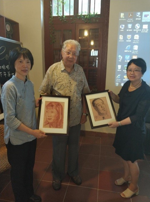 读书会行将结束之际,徐筑先生把徐悲鸿、司徒乔先后为其父亲和母亲所作的画像(复制版)以及其父所写的书法作品(复制版)赠与本院,由施雪琴教授和张长虹老师接受。