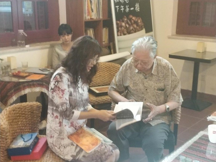 在最后的交流环节,深受感动的中文系副教授郭惠芬先与徐筑先生探讨了《瘖父詩藁:徐天從先生詩選》的细节,以及东南亚的古典诗词研究等问题,郭老师已出版《中国南来作者与新马华文文学:1919-1949》、《中外文学交流史.中国—东南亚卷》等学术著作,徐先生表示愿意奉献自己所收集的近千首诗作,支持郭惠芬老师开展相关研究。