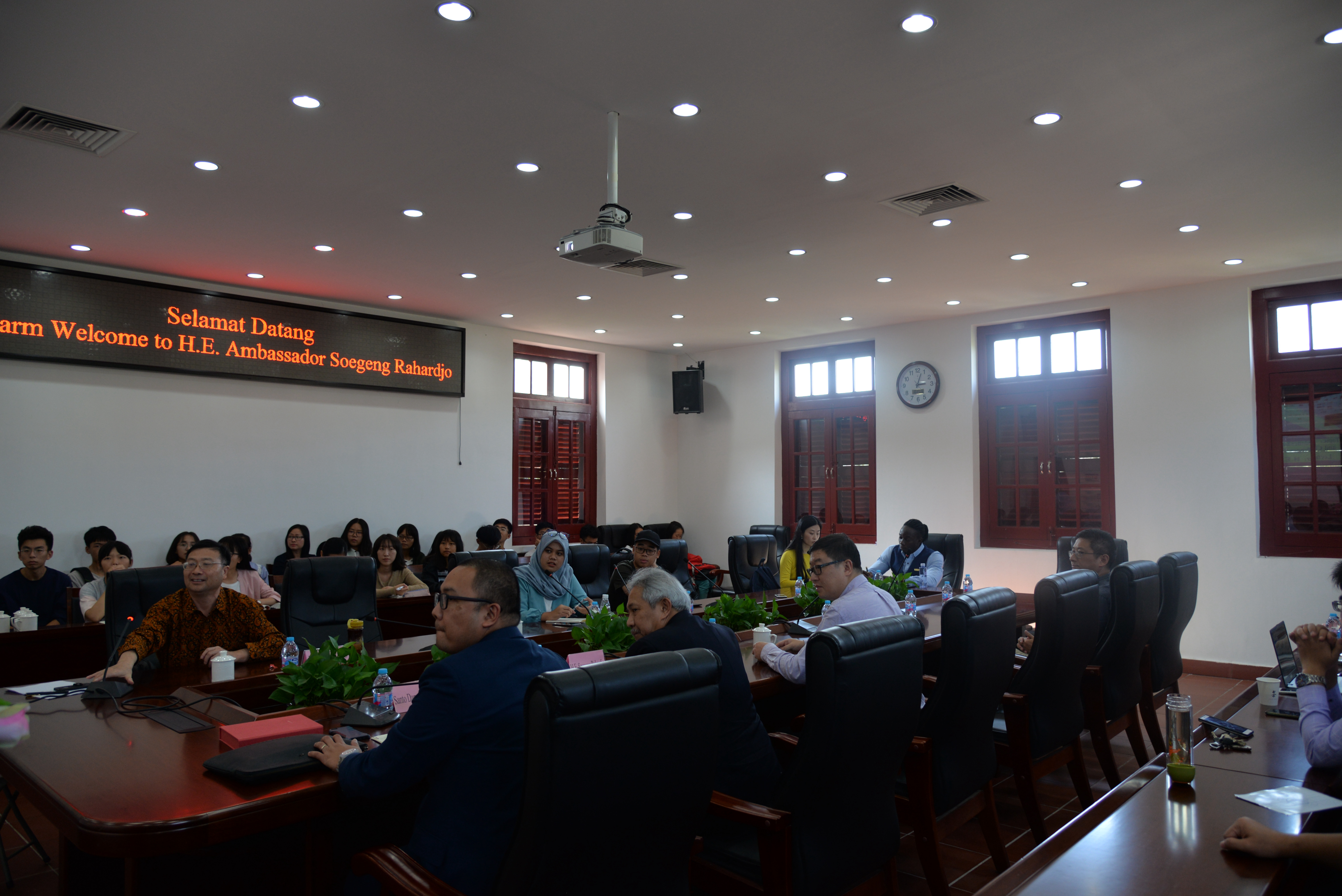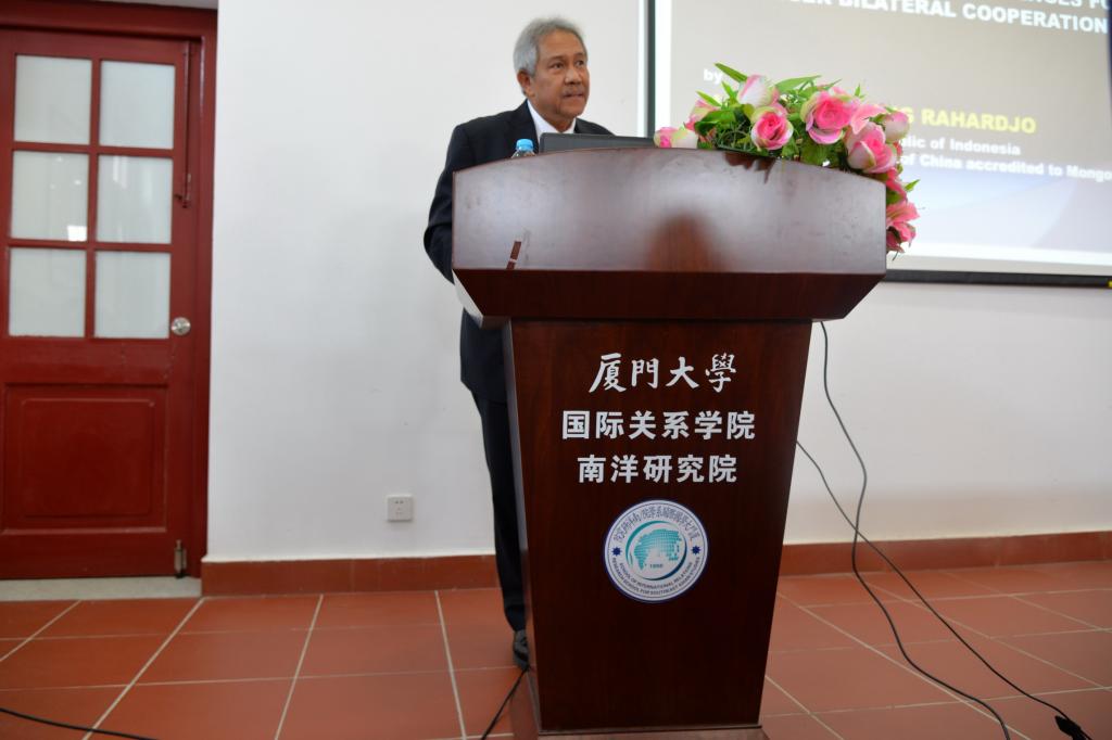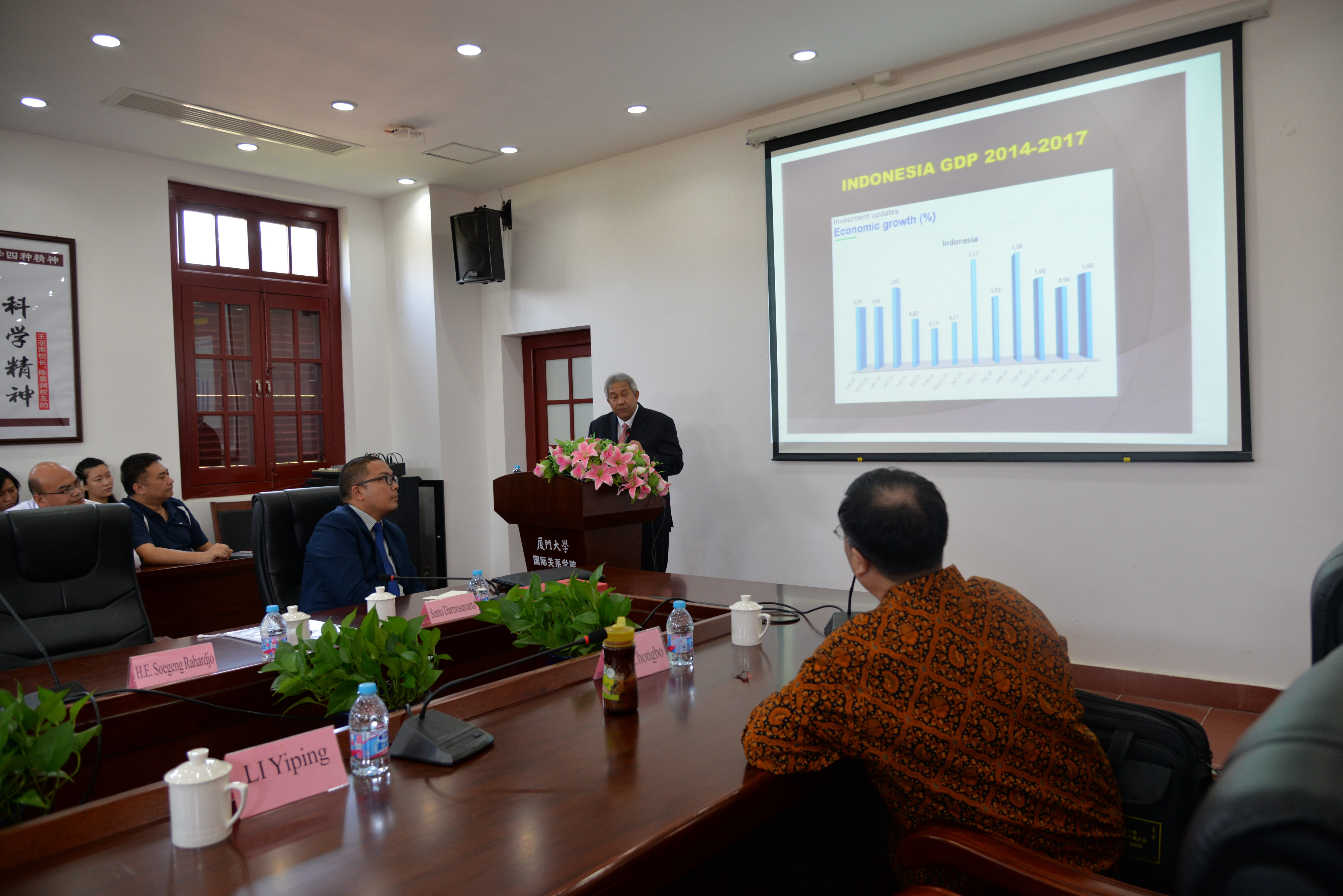 2017年10月27日下午,印度尼西亚共和国驻华大使兼蒙古国大使苏更·拉哈尔佐(H.E. Mr. Soegeng Rahardjo)阁下于厦门大学东南亚研究中心301(3)做了一场名为“印尼经济转型升级:加强双边合作所面临的机遇和挑战” 的报告。