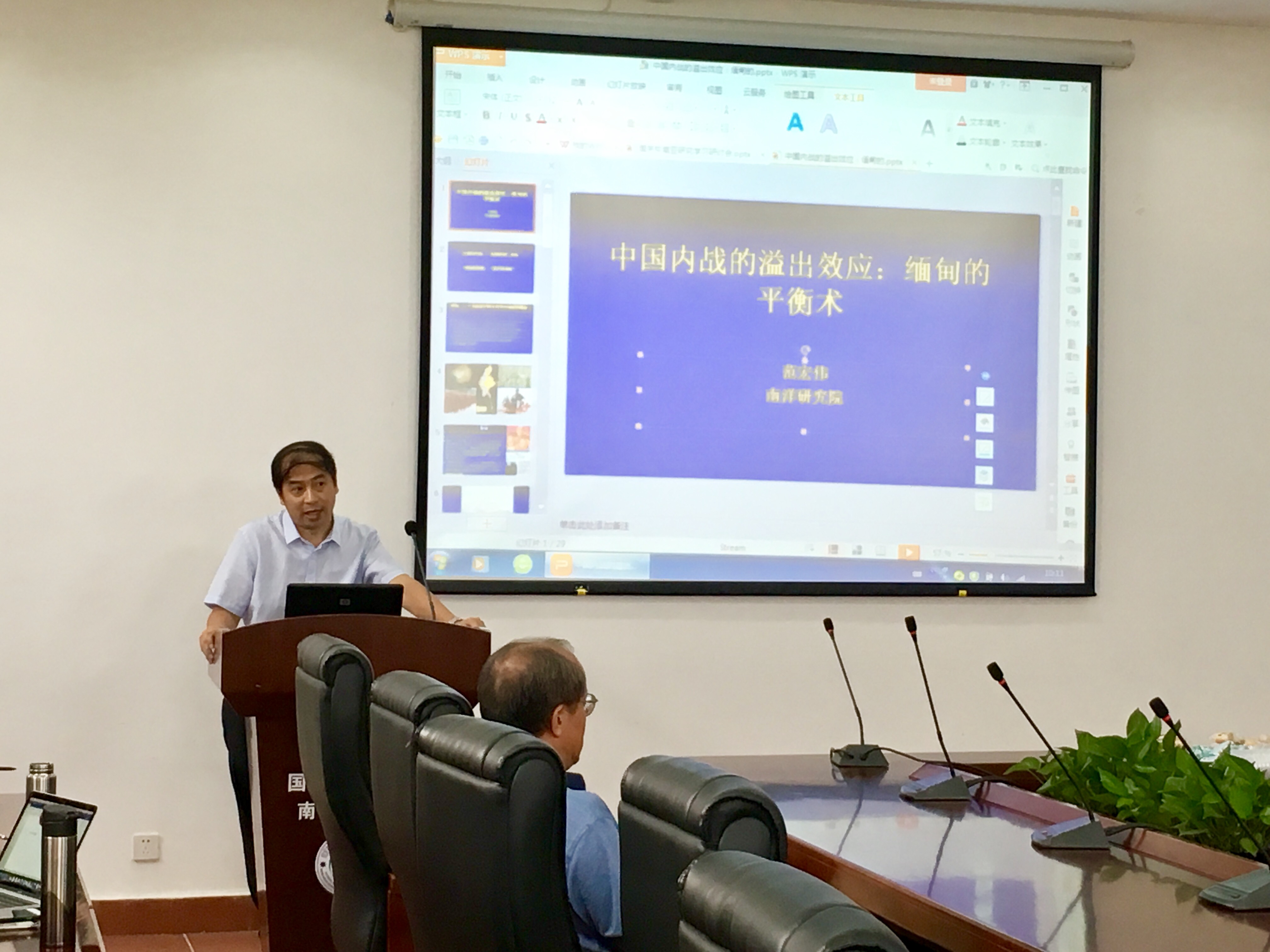 2017年9月22日上午十时许,在厦门大学东南亚研究中心301(3)会议室开展了首期国关/东南亚研究学习研讨会,主讲人是我中心范宏伟教授,讲题为“中国内战的溢出效应:缅甸的平衡术”。