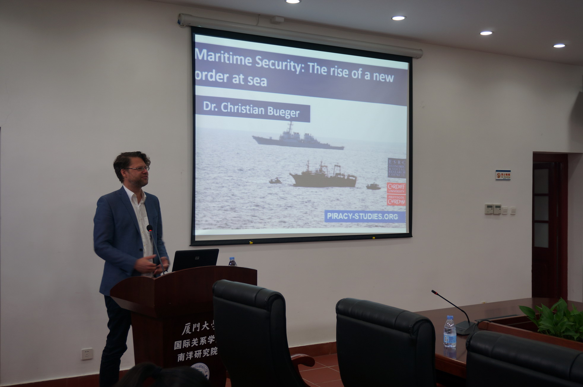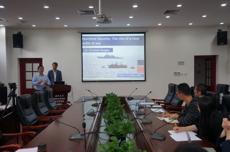 2016年11月10日下午,国际打击索马里海盗联络组“教训项目”负责人,卡迪夫大学政治与国际关系系副教授克里斯蒂安·布玉格博士(Dr.Christian Bueger)应邀来到厦门大学东南亚研究中心,并于南安楼301(3)会议室为我院师生作了讲座。讲座由我院许可副教授主持。