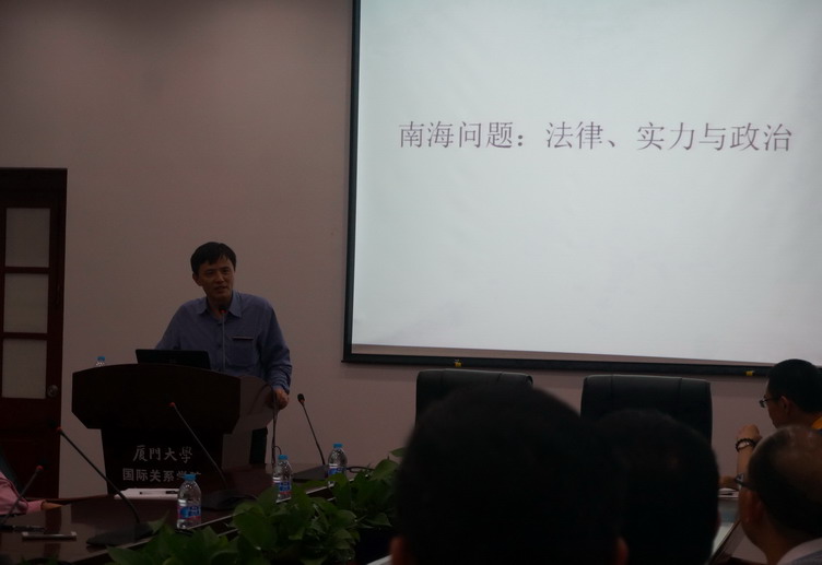 2016年5月10日晚,李明江副教授应邀于厦门大学东南亚研究中心301(3)会议室为我院师生作题为“南海问题:法律、实力与政治”的讲座,我院李一平院长主持讲座。李明江副教授目前任职于新加坡南洋理工大学拉惹勒南国际研究院,此次讲座李副教授以其多年的积累与工作环境体验为与会者剖析南海这一国际热点问题。