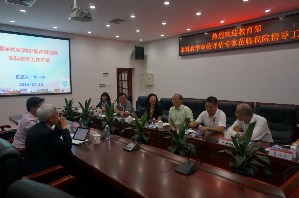 2015年11月16日下午,教育部本科教学审核评估专家、香港大学教育政策研究中心主任程介明教授在厦门大学学生处副处长王洁松的陪同下来到南安楼,展开对厦门大学国际关系学院的本科教学评估。