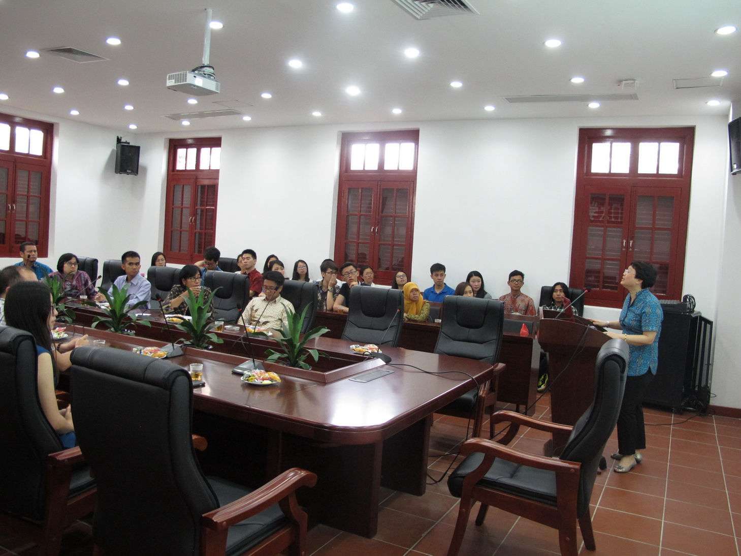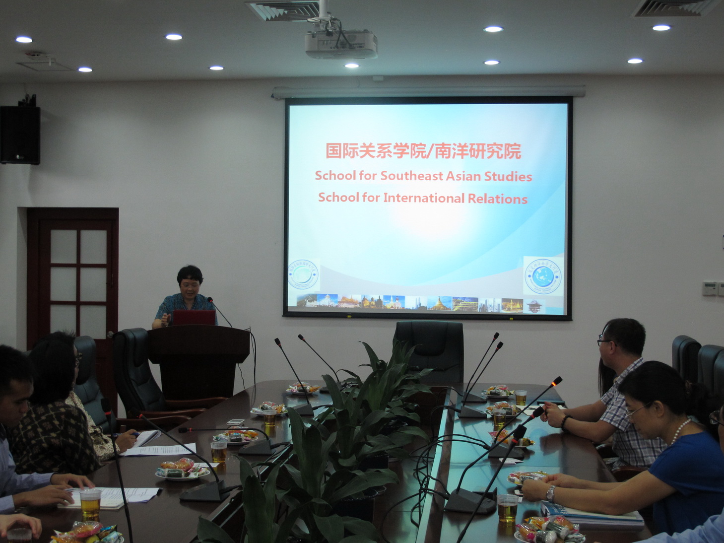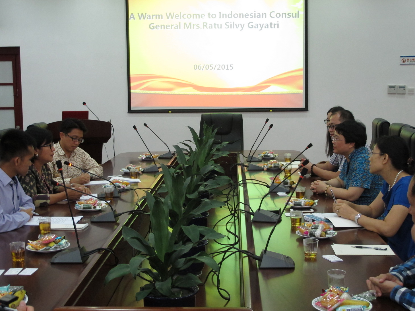 首先,施雪琴教授为大家作开场发言,在表达了对印尼总领事一行的热情欢迎之后,施老师从学院历史、学科、师资力量、国际交流合作等方面对我院概况作了简要介绍,尤其谈到与东南亚国家大学的交流合作。对于近期学术界谈论的焦点问题“海上丝绸之路”,施老师也表示对中国与南洋国家的发展充满期待与关注。