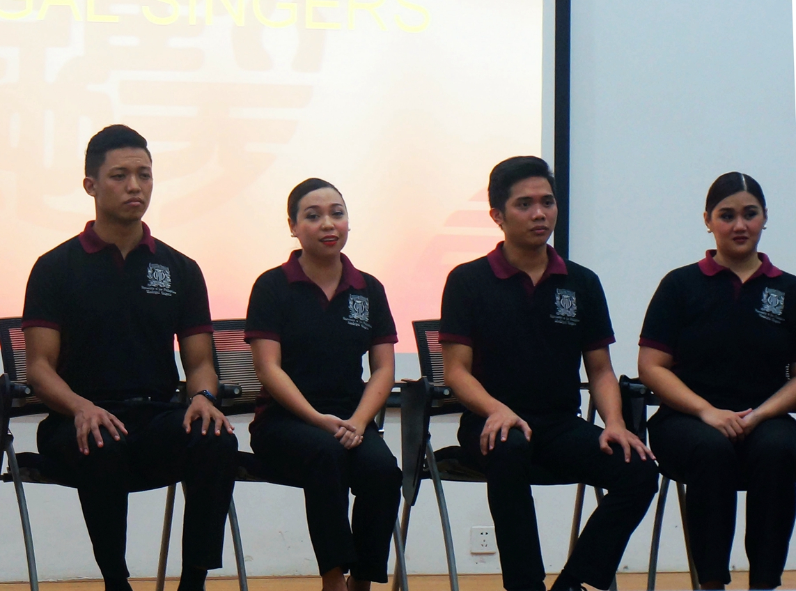 2015年6月4日18:00,菲律宾大学玛得利加合唱团(the Philippine Madrigal Singers)前来厦门大学国际关系学院暨南洋研究院进行交流演出。我院2014级全体本科生组成的合唱团与菲律宾大学合唱团同台演出,在歌声中增进了中菲大学生之间的友谊。