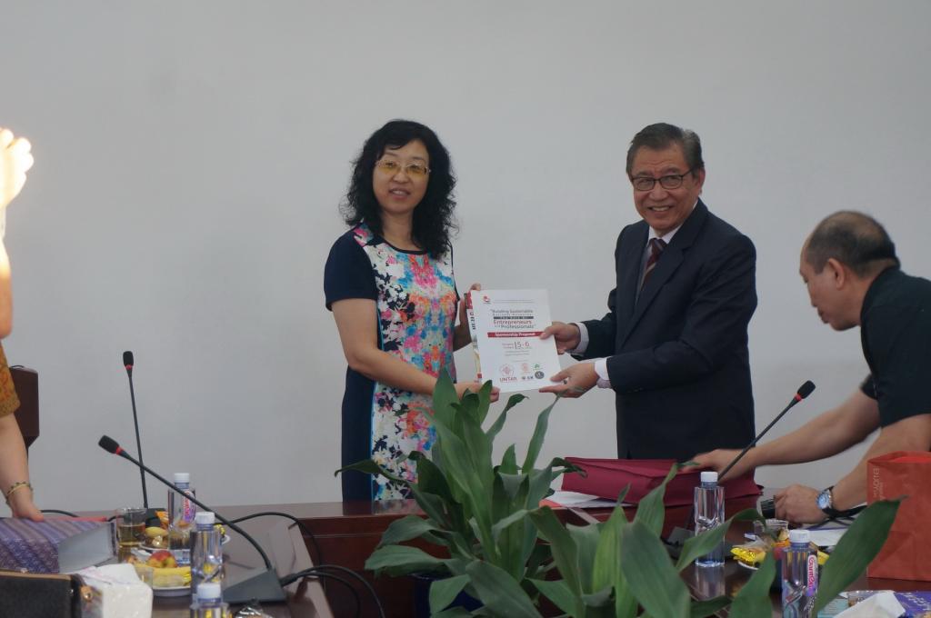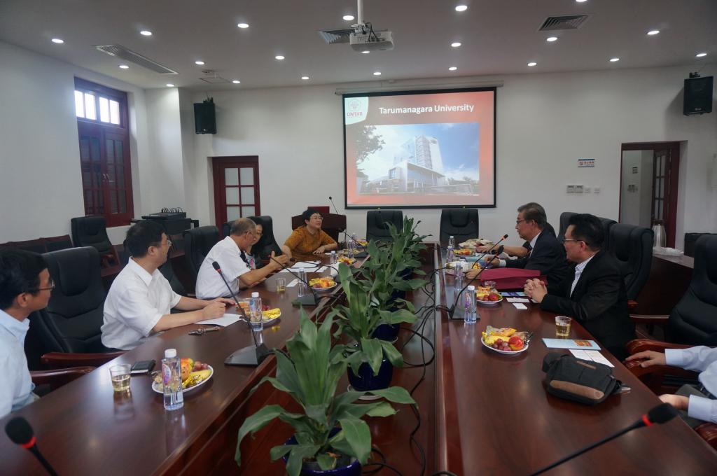 会议伊始,塔鲁玛伽大学校长Roesdiman Soegiarso教授为大家介绍了塔鲁玛伽大学的概况。塔鲁玛迦大学由印尼土生华人协会“新民会”创办于1959年,是印尼历史最悠久、规模最大的私立大学,目前在雅加达建立了四个校区,有学生14000多名,该大学的法学、工商管理以及建筑专业在印尼颇有声誉,深受印尼华裔子弟欢迎,目前该校80%的学生有华人血统。Roesdiman Soegiarso教授从教育理念、学校校史、学科设置、师资队伍、国际合作等方面展开介绍,其中着重展示了塔鲁玛迦大学关于中国传统文化教学与实践活动的开展情况,并表达了与我院建立学术交流合作关系的意愿。我院副院长施雪琴教授从厦门大学、南洋研究院两个方面为印尼代表团展开介绍,以不同的角度全面介绍了厦门大学的综合发展概况,尤其对我院的研究领域、学术交流与合作、办学特色等方面进行介绍。之后,双方对各自机构的情况展开了深入的交流与探讨。