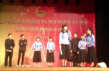 2015年5月4日下午17时,厦门大学2015年“五四红旗团支部标兵”评比活动在建南大会堂举行。国际关系学院2013级本科生团支部以精彩的话剧《我的国关我的团》参与评选,展现了团支部风采,致敬五四精神,荣获“五四红旗团支部标兵”称号。