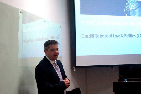 本次讲座中,Sutch教授首先介绍了卡迪夫大学及其政治学系的概况。卡迪夫大学位于英国威尔士首府卡迪夫,在QS世界大学排名上位列第123位,其政治学学科在英国大学排名中位列第14位。地理位置优越,校园环境优美。随后,Sutch教授从国际组织、国际机制、恐怖主义、世界贫困等角度简要分析了国际关系的现状,并围绕“British Politics&Devolution”、“European Politics”、“Political Thought”等问题发表了自己的见解。