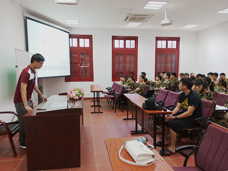 下午14时至15时,辅导员助理周亭佑对国关的大一新生们做了党史国情教育、民族团结教育、宗教政策教育、校史校情教育和心理健康教育。会上,周亭佑以自己对厦门大学的了解,帮助新生们看到自己即将开始的大学生活的多元性,通过这“五大教育”,增强了新生们对于厦门大学的认同感和身为厦大人的自豪感,培养了新生们在以后的大学生活中对与自己有不同宗教信仰等的人的容纳力。
