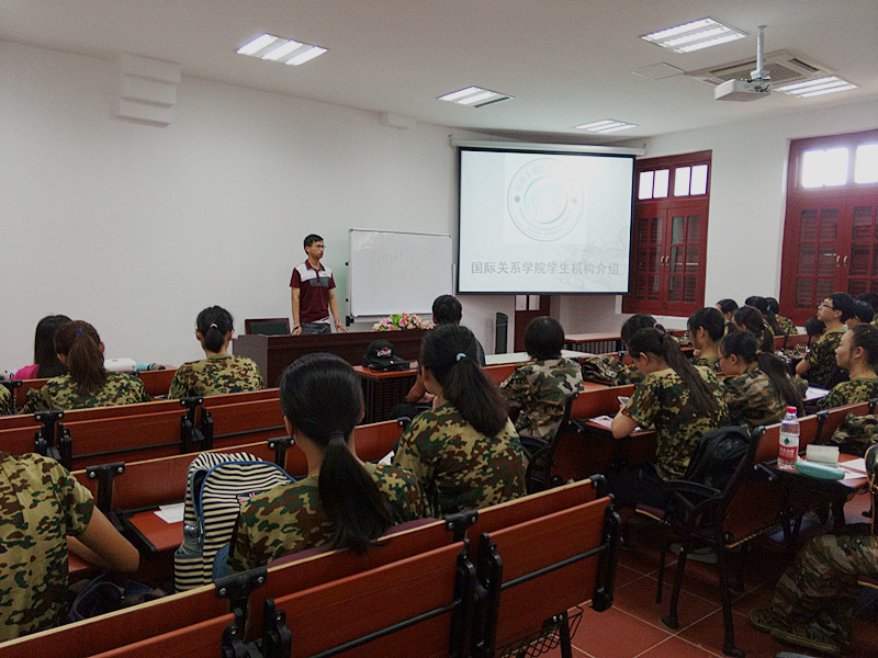 2014年8月27日,厦门大学国际关系学院学生活动介绍大会和新生教育会在南安楼203召开,国际关系学院团总支书记兼学生会主席陈振胤和辅导员助理周亭佑分别主持了两场会议。陈振胤学长向新生们详细介绍了新生在大学生活中可能遇到的各种校园活动以及本院学生机构的情况,结合自身的经验为新生的大学生活做了一个基础的描绘,同时为之后的院会纳新做好了充分的前期宣传工作。周亭佑学长则对新生们进行了“五大教育”,即党史国情教育、民族团结教育、宗教政策教育、校史校情教育和心理健康教育,使新生能够更好地适应大学生活,也得以感受了大学生活的多元化。