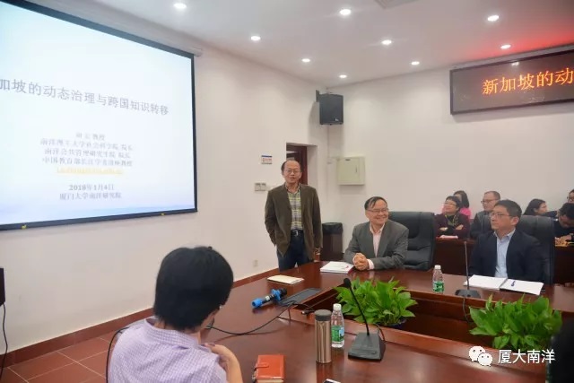 2018年1月4日,厦门大学东南亚研究中心迎来了新年的第一场讲座,主讲人是来自新加坡南洋理工大学的刘宏教授,讲座的主题是新加坡的动态治理与跨国知识转移。讲座开始前,李一平院长对这次的主题进行了介绍:目前,中国参与国际化程度越来越高,整个世界也都在关注着中国,期待中国能提供全球治理的方案,而新加坡在全球治理和区域治理方面能为我们提供宝贵的经验和实践,因此了解和学习新加坡的治理模式对如今的我们很有意义。