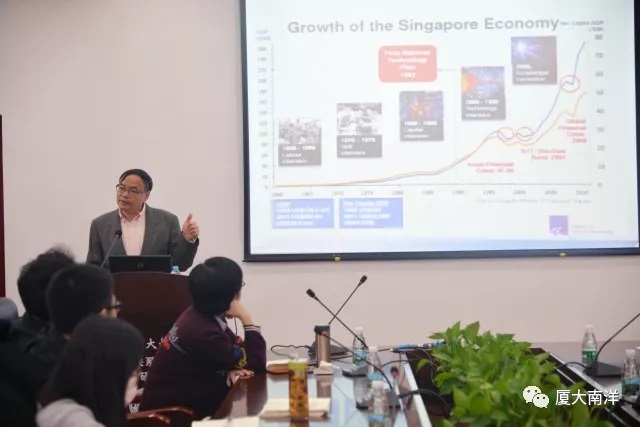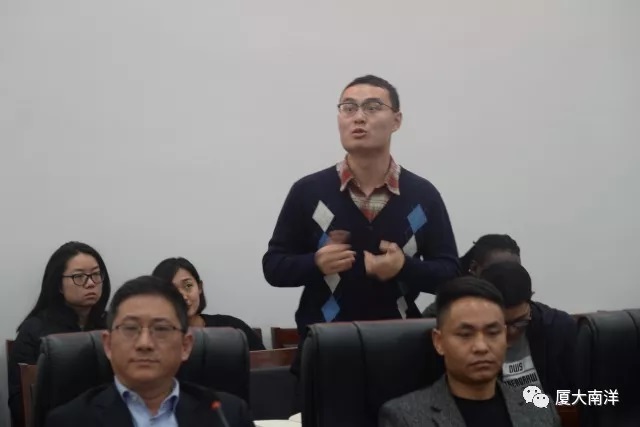 讲座结束后,在场的老师和同学踊跃发言和提问,针对新加坡与中国GDP之间差距缩小、新加坡与“一带一路”以及新加坡对侨民的管理等问题进行了探讨。