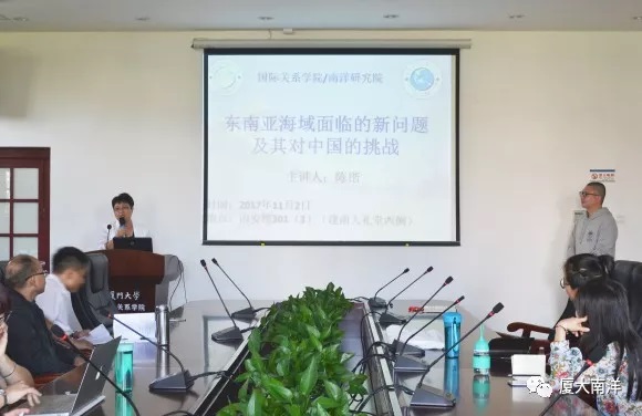 2017年11月2日下午,厦门大学东南亚研究中心301(3)迎来了本学期第一次南洋师说系列讲座——《东南亚海域面临的新问题及其对中国的挑战》,主讲人陈锴老师从“一带一路”倡议下中国的地缘安全的视角出发,探讨了当前东南亚海域存在的新问题与中国面临的新挑战。