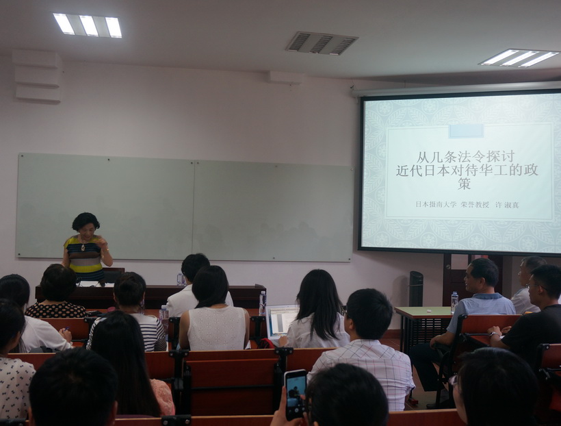 首位开讲的嘉宾为许淑真教授,讲座主题为《从几条法令探讨近代日本政府对待华侨的政策》。许教授生于台湾,毕业于台湾大学,曾在国立大阪大学、摄南大学执教多年,现任摄南大学荣誉教授。