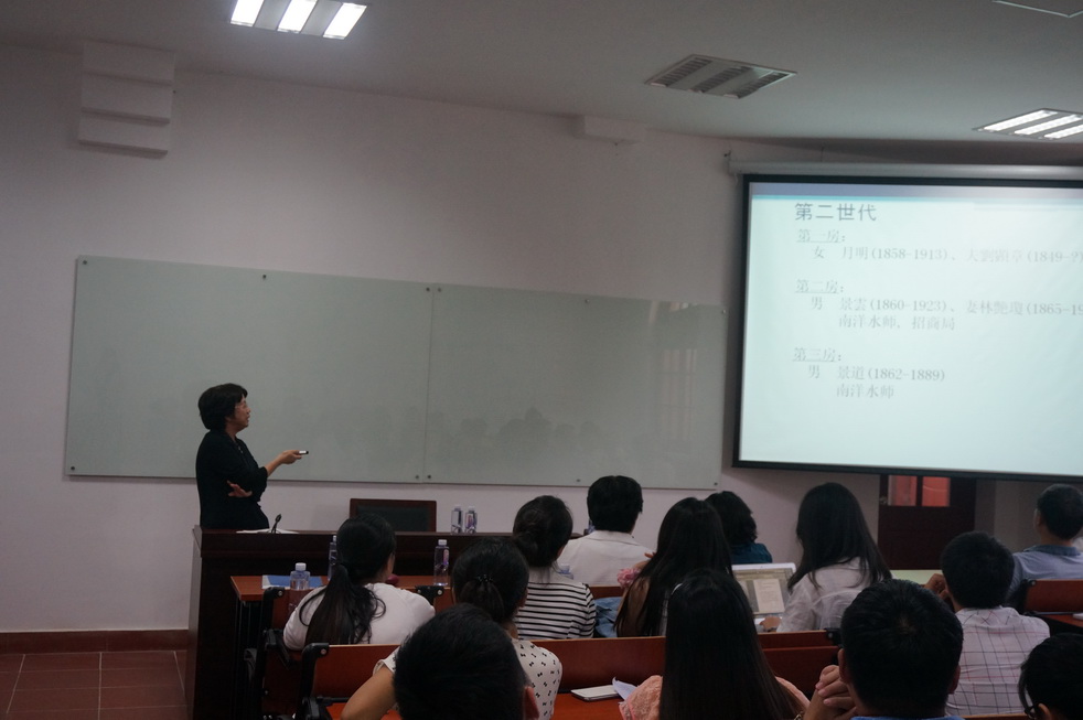 最后一位进行讲座发言的是容应萸教授,她的发言主题为《华人家族的国际移动――广东关元昌一族的个案研究》。容教授在广东出生, 香港长大,分别在东京国际基督教大学、美国哥伦比亚大学和东京大学获得学士、硕士和博士学位,现任亚细亚大学经营学部教授。