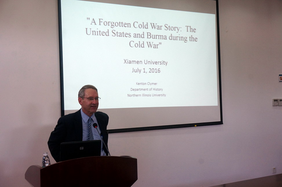 2016年7月1日上午,著名东南亚研究专家Kenton J.Clymer代表美国北伊利诺伊大学与厦门大学国际关系学院/南洋研究院签署了合作协议,并应邀进行题为A Forgotten Cold War Story: The United States and Burma during the Cold War的讲座。本次活动由厦门大学国际关系学院/南洋研究院副院长施雪琴主持。