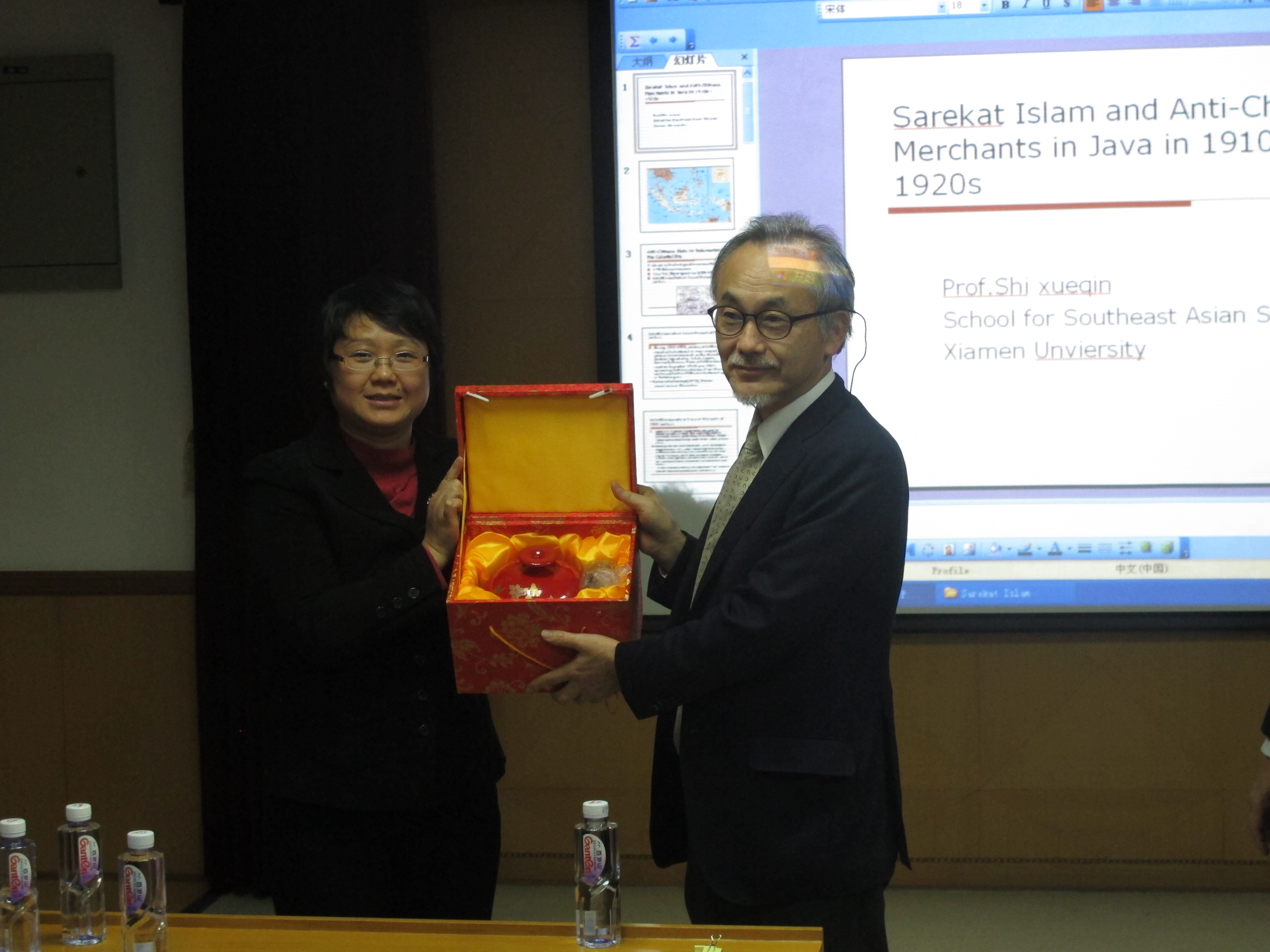 此次研讨会开幕式由聂德宁教授主持,我院院长庄国土教授与日本京都大学人文科学研究所的岩井茂树教授分别致开幕辞,两位教授都充分肯定了东亚海洋史研究的重要性以及京都大学人文科学研究所与厦门大学南洋研究院对该领域的重要研究成果与在该领域研究的地位。简短的开幕式之后,第一场由王望波教授主持的中文研讨会开始,来自日本京都大学的学者山崎岳从法制观念的角度来对比明朝中期朱纨与林希元这两位政治人物关于海禁政策对立的观念以及海禁治理政策差异所带来的深刻影响,他的研究的角度新颖,资料丰富。随后厦门大学的聂德宁教授向大家介绍了清代中期中国与东南亚的海上贸易,主要以大米贸易为重点,介绍了清朝中期中国与东南亚海上贸易的盛衰,并分别就群岛国家与半岛国家的不同情况进行了分析。刘勇副教授则是从档案的角度入手,向大家介绍了荷兰广州商馆及其档案,就荷印公司驻广州商馆的组织及运行机制以及其所保存的档案内容进行了介绍,这一档案也是研究当时荷印公司贸易的重要资料。下午举行的第二场英文研讨会由我院张苾芜教授主持。来自京都大学的学者笼谷直人向大家介绍了日本神户港19世纪的对外贸易情况,东京大学学者岛田竜登陈述了近代早期在日本与东南亚的中国帆船贸易,对比了日本、中国与暹罗三国贸易的不同。最后,厦门大学施雪琴教授考察了20世纪初期的伊斯兰联盟与印尼爪哇岛的反对中国商人运动,分析了印尼的伊斯兰民族主义与排华骚乱的内在联系。