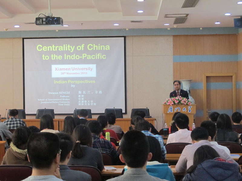2013年11月28日下午15:00整,应厦门大学国际关系学院/南洋研究院之邀,来自印度尼赫鲁大学国际关系学院的学者斯瓦兰·辛格(Swaran Singh)教授在嘉庚三220会议室为南强学子带来了一场历时一个半小时的讲座——印度视角下中国在印度洋—太平洋地区的主导地位。