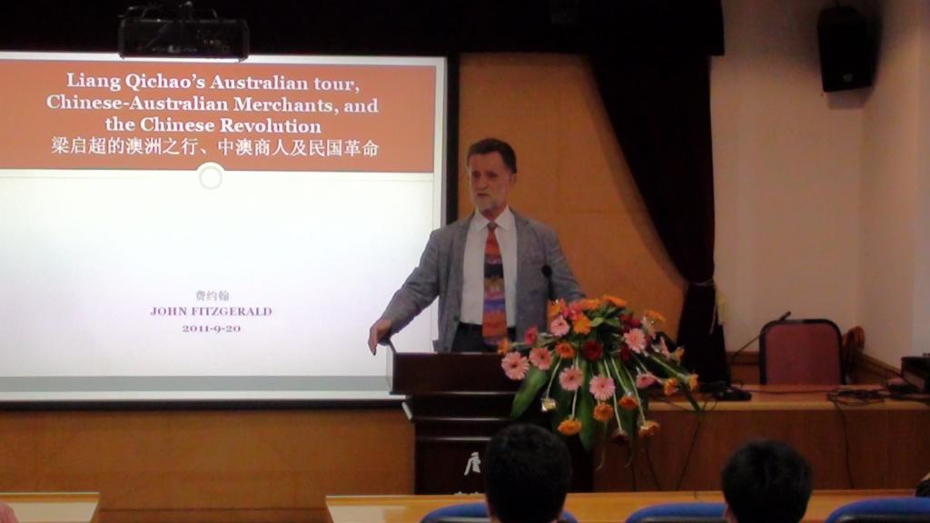 费约翰教授用英文作“Liang Qichao’s Australian tour, Chinese-Australian Merchants,and the Chinese Revolution”专题演讲,通过梁启超澳洲之行的个案,特别是中澳商人19世纪-20世纪在澳洲的发展,以民国革命为背景,介绍了澳洲华人、华人商会以及华人媒体报纸的历史变革。两场演讲都引起听众积极参与讨论,现场互动热烈。