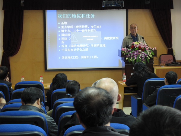 首先,党总支书记范丽致开幕词。她指出本次大会的重要性和必要性,对全体教职工过去一年的成绩加以肯定,并提出新年新希望。接着,院长庄国土做题为《困境和出路:本院发展方向的思考和实践》的工作报告。报告重申了我院在学校乃至全国的特殊地位和肩负的重大任务,肯定了过去一年我院教职工在教学、科研、人才队伍建设和国内外影响等方面所取得的成绩,同时从主客观两方面阐释了我院目前发展滞后的问题和原因,并提出对策建议和目标要求。院长希望我院全体教职工站在团队和个体发展的战略高度上,充分发挥组织与个人的优势和潜力,不断提升自身竞争力,加强创新思维和学术积累,强化国际问题研究能力,推进跨学科研究,提高公关能力,扩大合作与交流,朝着高端学术与国际化发展方向不断迈进。最后副院长王勤作财务工作报告,介绍我院2010年度财务收支情况。