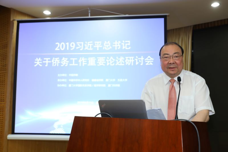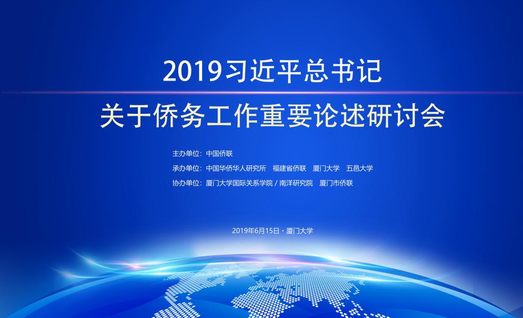 6月15日,由中国侨联主办,中国华侨华人研究所与福建省侨联、厦门大学、五邑大学承办,厦门大学东南亚研究中心/南洋研究院、厦门市侨联协办的2019习近平总书记关于侨务工作重要论述研讨会在厦门大学科学艺术中心召开。中国侨联党组书记、主席万立骏出席会议并讲话。福建省副省长郭宁宁,厦门大学党委书记张彦,中国侨联副主席、福建省侨联主席陈式海,浙江省侨联主席连小敏,中国华侨华人研究所所长张春旺,来自全国人大华侨委、全国政协港澳台侨委、致公党中央、中央党史和文献研究院的干部,中国华侨历史学会理事和专家学者,以及福建省涉侨部门和各级侨联干部出席会议。中国侨联党组成员、副主席暨中国华侨历史学会会长隋军主持会议。