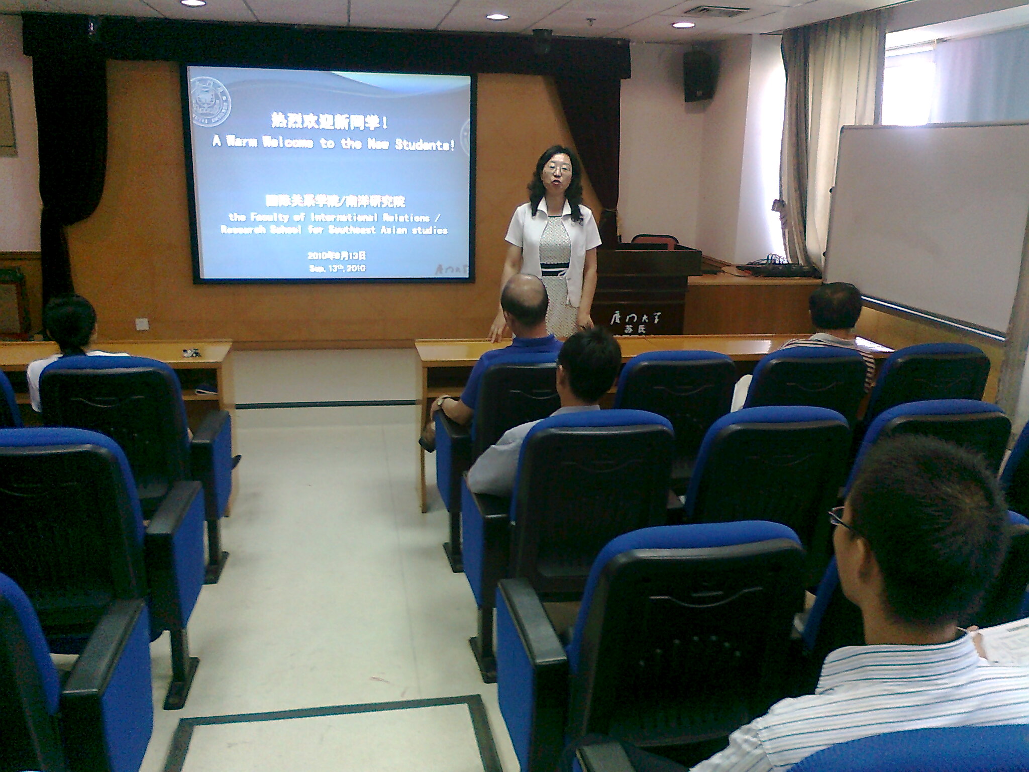 2010年9月13日,厦门大学国际关系学院/南洋研究院10级研究生迎新会顺利召开,迎新会分为国际硕士与国内硕士两场。
