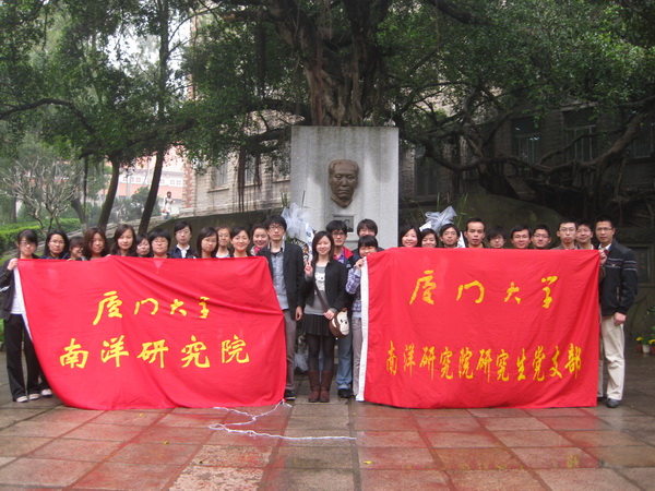 为引导学生在慎终追远、缅怀先辈的情怀中认知传统、尊重传统、弘扬传统,增进爱国、爱校情感,2010年4月5日,南洋研究院/国际关系学院党总支、团委组织学院研究生党支部和团支部开展缅怀革命先烈、弘扬爱国传统的系列悼念活动。