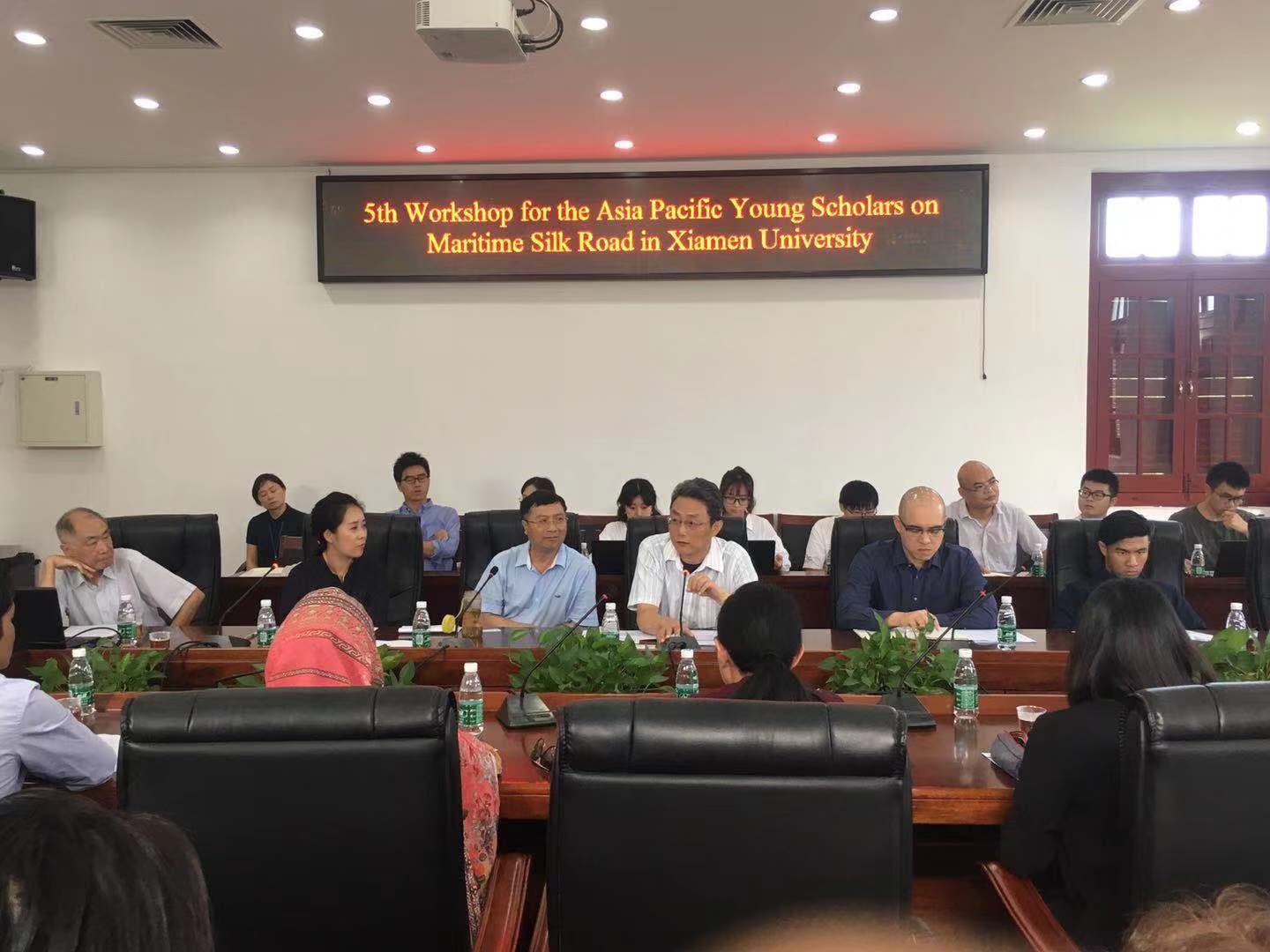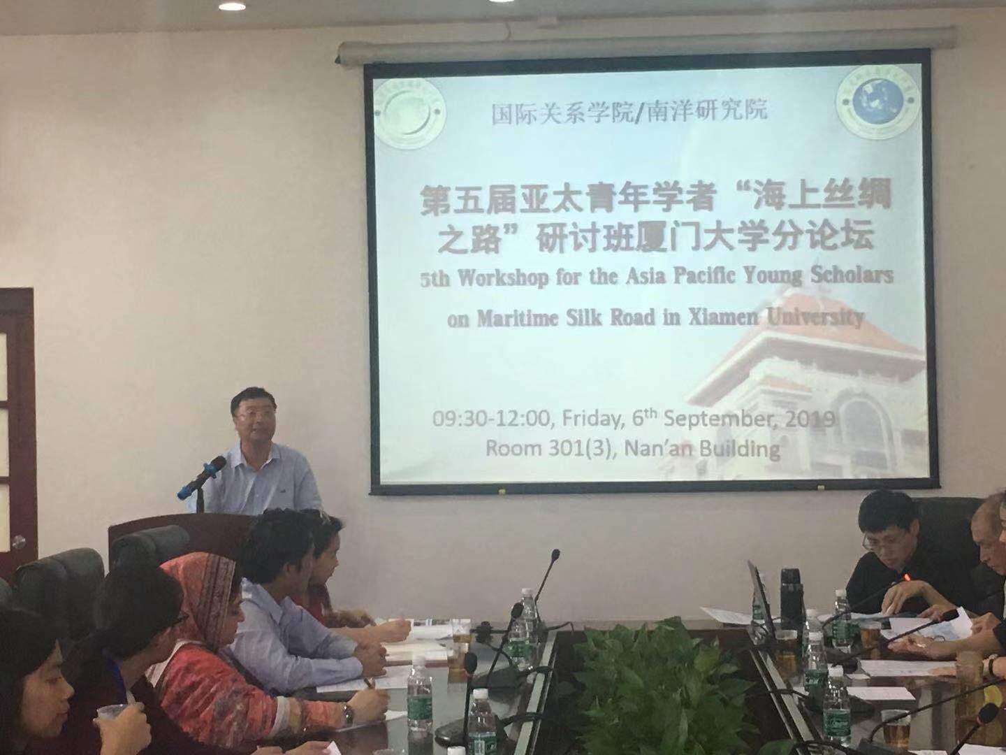 2019年9月6日上午9点30分,第五届亚太青年学者“海上丝绸之路”研讨班厦门大学分论坛在我院举行。本次论坛由中国国际问题研究院、亚太安全合作理事会中国委员会主办,厦门大学东南亚研究中心/南洋研究院负责承办,邀请了来自东盟十国、日本、韩国、俄罗斯、巴基斯坦等周边国家从事亚太地区安全问题研究的青年学者十余人参加。来自各地的青年学者与我院师生就“一带一路”倡议以及中国在经济发展中的经验与借鉴等问题进行了深入探讨交流。
