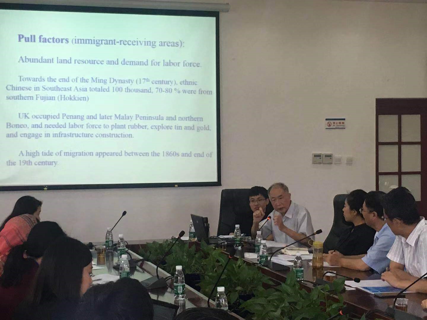 在双方简要做相互介绍后,由东南亚研究中心副主任、南洋研究院副院长吴崇伯教授致欢迎词,对到场的来自各国的青年学者表示热烈的欢迎并简要介绍了厦门大学南洋研究院的历史与学科设立以及当前的发展情况。吴崇伯教授指出:中国与东盟的经贸关系在近几十年以来经历了巨大的飞跃,当前中国是东盟的第一大贸易伙伴,东盟是中国的第三大贸易伙伴,同时东盟也是“海上丝绸之路”的重要节点,因此对于中国东盟研究以及海上丝绸之路研究对发展双边合作有重要促进作用。