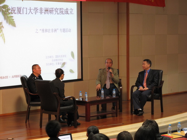 2009年12月2日,值厦门大学非洲研究院成立之际,东南亚研究中心/南洋研究院与非洲有约协会联合主办的“中国维和行动在非洲”访谈会在漳州校区小报告厅成功举办。应邀参加访谈会的嘉宾分别是东南亚研究中心/南洋研究院庄国土教授、政治学博士赵海立副教授、福建维和第一人赵雷先生。