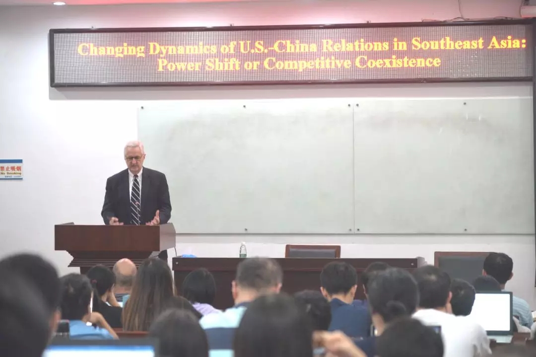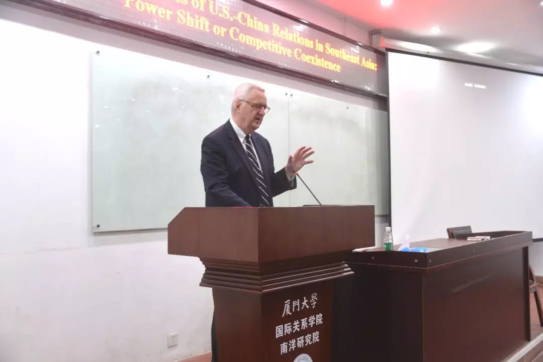 2019年10月24日星期六,厦门大学东南亚研究中心南安楼101,来自不同专业的厦大师生,有幸聆听了沈大伟教授(Professor David Shambaugh)题为“Changing Dynamics of U.S.-China Relations in Southeast Asia:Power Shift or Competitive Coexistence”的讲座。