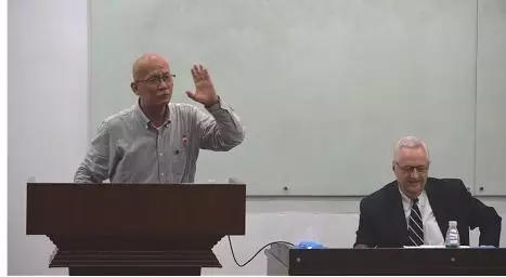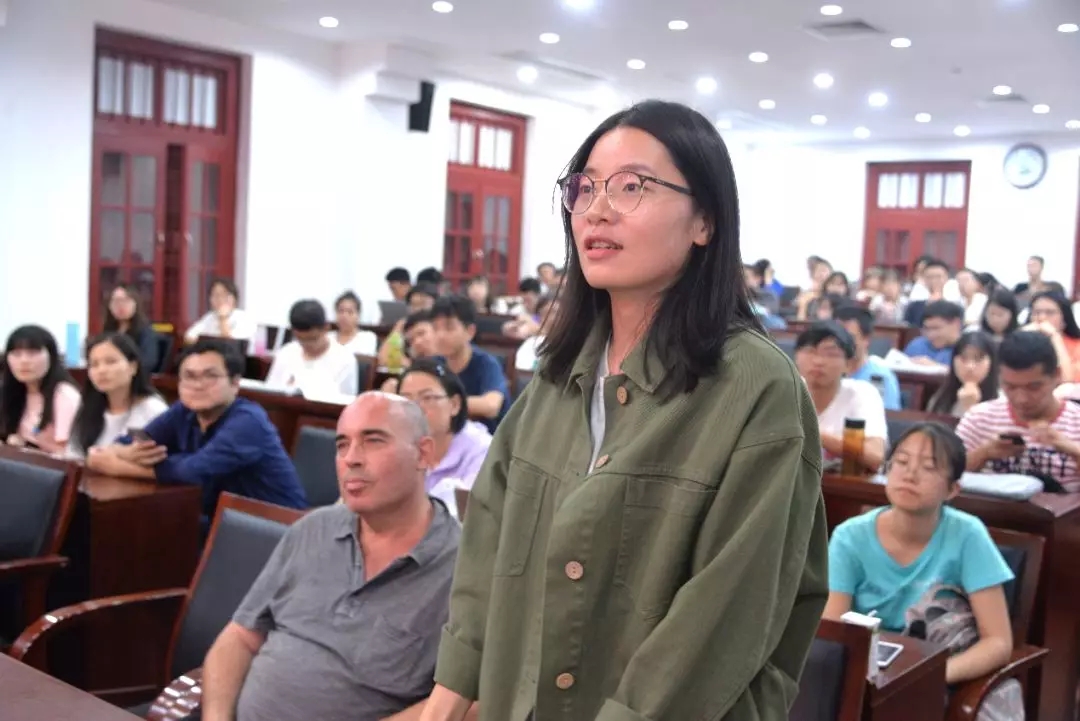 伴随着阵阵掌声,讲座进入了最后的提问环节,在场师生就自己关心的中美关系热点问题,与沈大伟教授进行了探讨,内容涉及:中美贸易战对东南亚的影响、中国的软实力、东南亚国家的政策自主性等等。讲座在沈大伟教授的中文“晚安”中圆满结束。