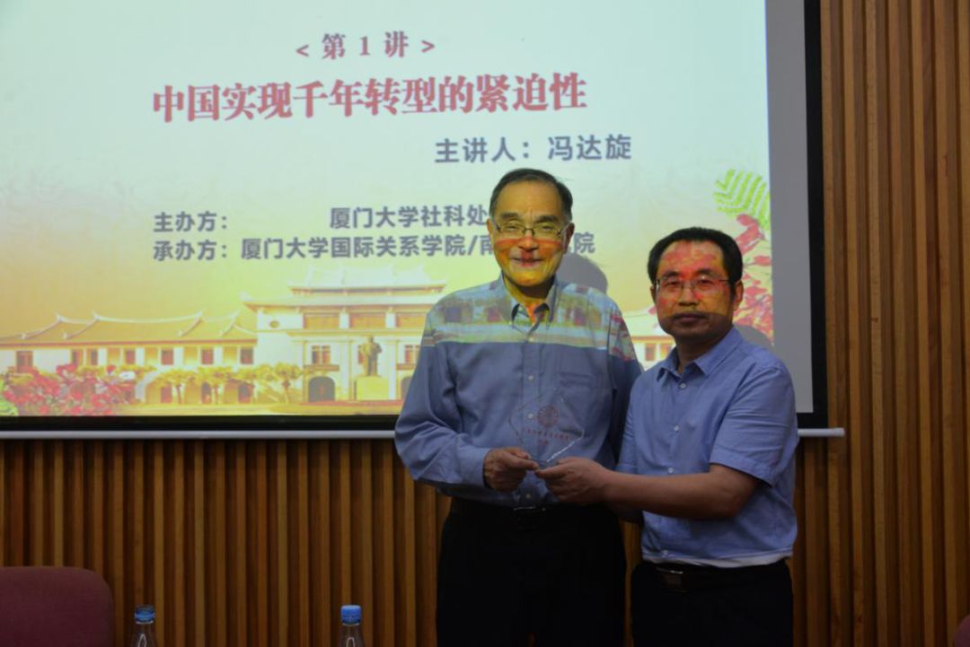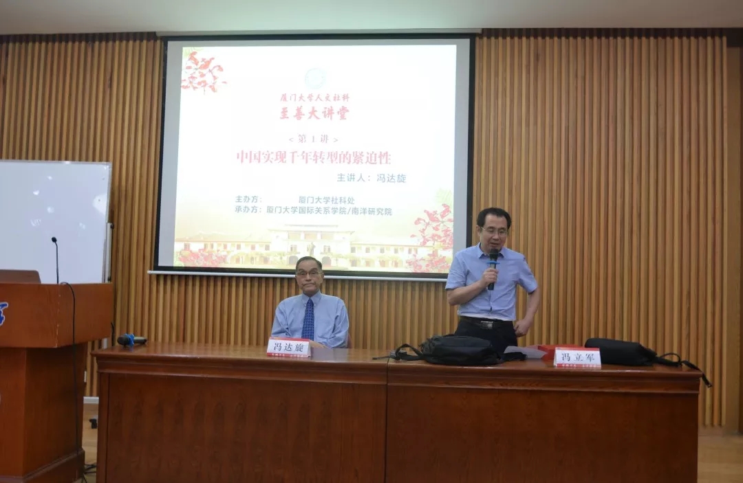2019年10月26日,由厦门大学社科处主办,东南亚研究中心/南洋研究院承办的厦门大学至善大讲堂第一讲邀请到了冯达旋教授。冯达旋教授是美国物理学会会士、美国达拉斯德州大学研发副校长、美国五百强企业SAIC副总裁、陈嘉庚基金会董事、台湾清华大学资深副校长,曾荣获2017年度中国“文化交流人物”,担任复旦大学、南京大学、华中科技大学、协和医科大学等十三所大学的荣誉教授。此次他为我们作了题为“中国实现千年转型的紧迫性”的演讲,国际关系学院/南洋研究院副院长、东南亚研究中心冯立军教授主持了本次讲座。