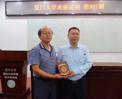 提问环节,夏教授与现场师生进行了热烈探讨,在场的广大师生受益匪浅。东南亚研究中心教授李一平向夏飞教授赠予南强学术讲座纪念牌,本期厦门大学南强学术讲座圆满结束。