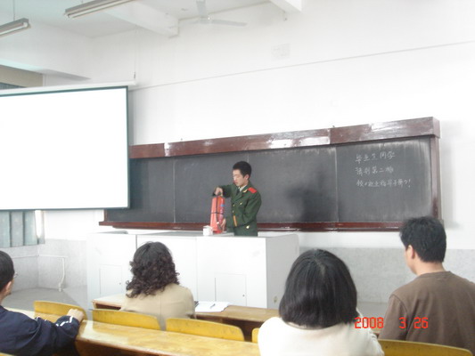讲座中,涂警官紧紧围绕“责任重于泰山、防火胜于救灾、隐患险于明火”的理念,从校园消防安全的重要性,校园消防安全现状、校园消防隐患分析和预防校园火灾的对策等四个方面,详细解析了校园消防安全的迫切性和重要性。并向全体师生发出号召,号召大家明确水火无情,不做火灾的制造者和牺牲者,为共建和谐校园、平安校园贡献一份力量。之后,涂警官针对具体的消防常识、常见的消防器材和火灾自救逃生等实践环节给予介绍和演练,让大家对消防安全有更进一步的感官体验和认识。