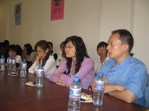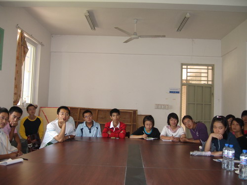 会议刚开始时,同学们都还有一点拘束,但在老师和学长学姐们耐心的解答和讲述中,会议气氛变得异常活跃.同学们把自己入学以来积藏在心里的迷茫和疑惑都讲了出来,并且得到了满意的解答.五位硕士博士的讲话各有特色,博二的林志清讲述了自己一路凭兴趣走来的历程.尹春芳则强调了大学里综合实践的重要性.班主任赵海立老师和导师王虎,刘勇老师也从自身经谈起,告诉大家要学会规划自己的人生.