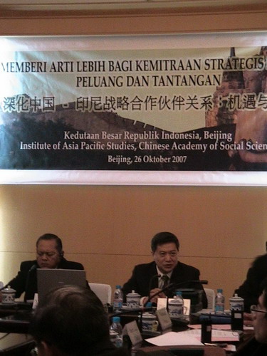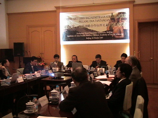 2007年10月26日,印尼驻中国大使馆和中国社会科学院亚太研究所在北京共同举办了题为“推进中国与中国战略伙伴关系:机遇与挑战”的国际研讨会,我中心副教授林梅和吴崇伯教授应邀参加。