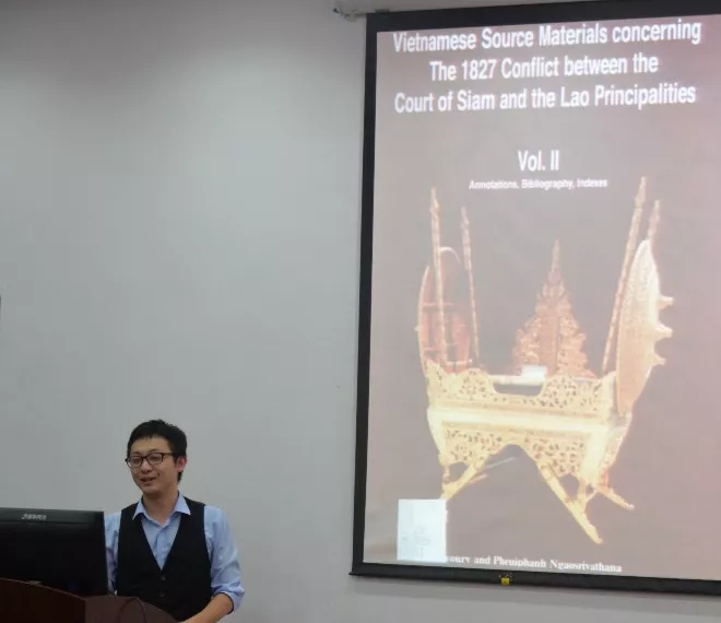 最后部分介绍的则是越、老、占婆和法国势力介入史料。马有理和费艾范·纳斯里瓦达纳(Mayoury and Pheuiphanh Ngaosrivathana)的《越南文献材料关于暹罗朝廷和老挝公国1827年冲突的记录》(Vietnamese Source Materials Concerning the 1827 Conflict between the Court of Siam and the Lao Principalities),既反映了越南与暹罗的霸权争夺,也反映了暹罗在老族势力范围内的优势。占婆方面的材料,最有代表性的莫过于五种占婆语转写和法语或马来语对照史料“占婆语手稿收集”(Koleksi Manuskrip Melayu Campa)系列,该系列已由法国远东学院和马来西亚文化、艺术和旅游/传统遗产部推出。