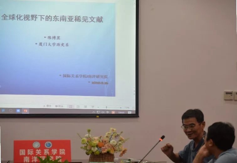 秋分已过,凉夜春耕。厦门大学东南亚研究中心第廿二期国关系列读书会暨第十九场南洋真人馆沙龙,从春天延至秋季,于2020年9月26日在南安楼举行。新冠疫情仍在蔓延,关注东南亚现实,从源头开始。厦门大学历史系副教授陈博翼博士主讲的读书会题为“全球化视野下的东南亚稀见文献”,由厦门大学国际关系学院/南洋研究院聂德宁教授主持。