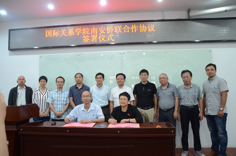 为贯彻落实习近平总书记关于“根、魂、梦”新时代侨务工作主线,发挥厦门大学的创新、人才、科研和南安侨务资源等双方优势,推动我院教学工作提升及促进南安侨乡文化品牌提质,共同服务于福建侨乡经济社会发展,2020年10月17日上午,在厦门大学南安楼101教室,我院与南安市侨联举行合作协议签约仪式。到访的嘉宾除了南安市侨联的相关领导外,还有南安市侨史协会的多位成员,共计35人。该仪式由我院外交侨务系副系主任、印尼研究中心高艳杰老师主持,我院副院长、印尼研究中心施雪琴教授致欢迎词,南安市侨联主席叶谋封则代表南安侨联作了发言。接着,双方签订实践基地合作协议。该协议是在互惠互利、相互协作、共同发展的原则下签订,内容包括我院定期组织教师与学生到南安侨乡开展调查研究活动;共同开展课题申请与研究工作,我院为南安地方侨史研究提供人才支撑和智力支持及开展侨史工作查阅相关书籍、资料时提供便利,侨联则为我院海外侨史调研提供联络协助;侨联每年向我院开放一定数量的本科生与研究生实习岗位并完成实习指导等。最后,双方举行实践基地授牌仪式。