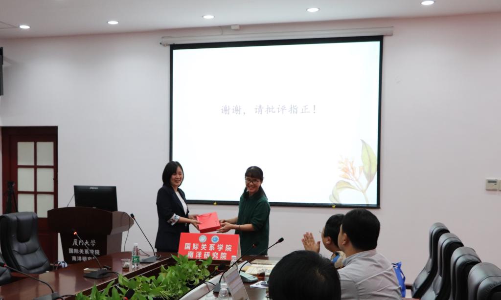 最后,厦门大学国际关系学院/南洋研究院沈燕清副教授代表学院图书馆和印尼研究中心向童莹老师赠送礼品。