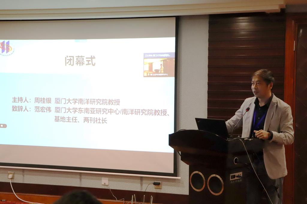 最后,厦门大学南洋研究院周桂银教授主持会议闭幕式,东南亚研究中心/南洋研究院教授、基地主任、两刊社长范宏伟对与会的各位专家学者表达感谢,表示将充分整理大家的意见和建议,期待未来更多的交流与合作。本次会议圆满结束。