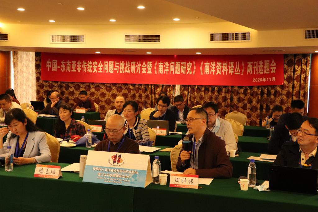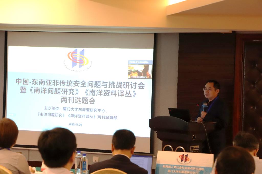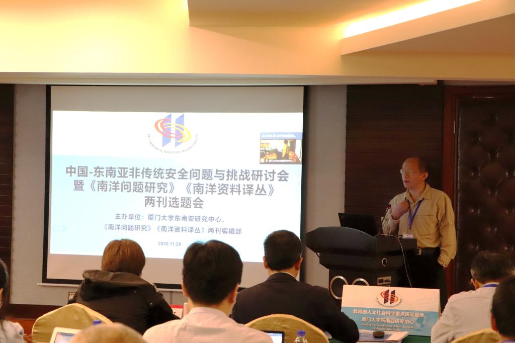 2020年11月29日,由教育部重点研究基地厦门大学东南亚研究中心主办的“中国-东南亚非传统安全问题与挑战研讨会”暨《南洋问题研究》《南洋资料译丛》两刊选题会在福建厦门顺利举行。本次会议邀请了相关研究领域的知名专家学者和实务行业的专家,会议代表结合自身研究专业和实践经历,分享了对中国与东南亚非传统安全研究领域最新研究热点及两刊选题的意见和建议。会议由南洋研究院副院长、东南亚研究中心教授冯立军主持。