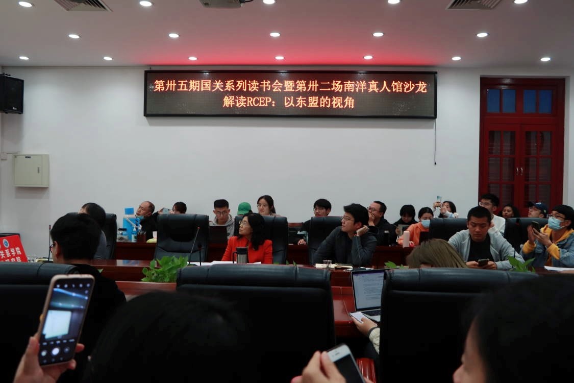 冬至将临,月圆庭满,玉声探赜,驱寒播种。2021年12月19日晚19:00,第卅五期国关系列读书会暨第卅二场南洋真人馆沙龙在厦门大学思明校区南安楼301-3举办。读书会的主题为“解读RCEP:以东盟的视角”,主讲人是厦门大学国际关系学院/南洋研究院教授王勤,学院副教授林梅担任主持人。