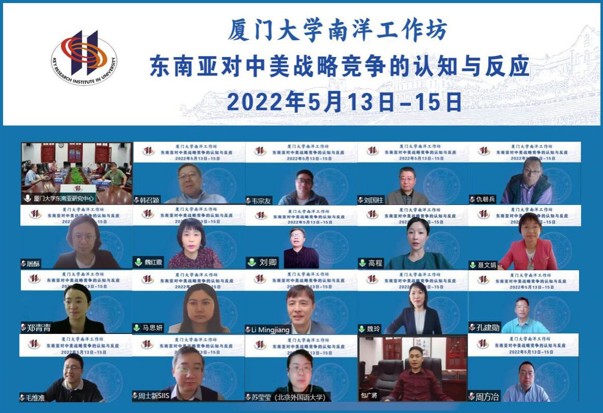 2022年5月13-15日,由厦门大学东南亚研究中心及《南洋问题研究》《南洋资料译丛》两刊编辑部主办的厦门大学南洋工作坊(第二期)在福建厦门顺利举行。本期工作坊主题为“东南亚对中美战略竞争的认知与反应”,以线上线下相结合的形式进行。来自中国社会科学院、中国国际问题研究院、上海国际问题研究院、浙江大学、南开大学、武汉大学、复旦大学、厦门大学、云南大学、北京外国语大学、外交学院等高校及科研学术机构的五十余位专家学者参加了本期工作坊。