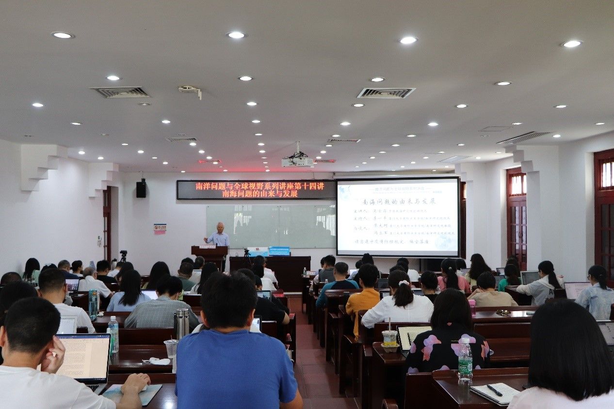 2022年5月31日上午,昔受疫情影响延期举办的“南洋问题与全球视野”系列讲座第十四讲在南安楼101教室举行。本次讲座主题为“南海问题的由来与发展”,主讲人为中国南海研究院创始院长吴士存研究员。本次讲座由厦门大学国际关系学院/南洋研究院院长李一平教授主持,厦门大学国际关系学院/南洋研究院廖大珂教授、冯立军教授担任与谈人。