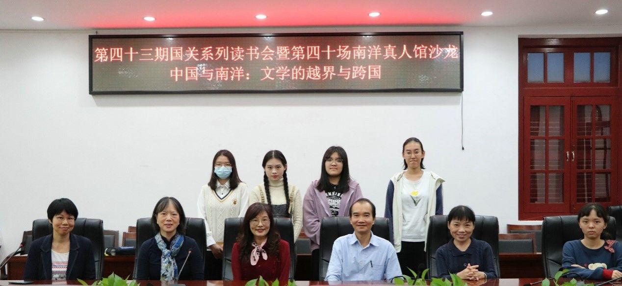 书窗夜静,清风一卷诗。2022年11月27日晚,第四十三期国关系列读书会暨第四十场南洋真人馆沙龙在厦门大学思明校区南安楼301-3会议室举行。读书会主题为“中国与南洋:文学的越界与跨国”,厦门大学中文系郭惠芬教授担任主讲人,中文系苏永延副教授担任主持兼评议人。