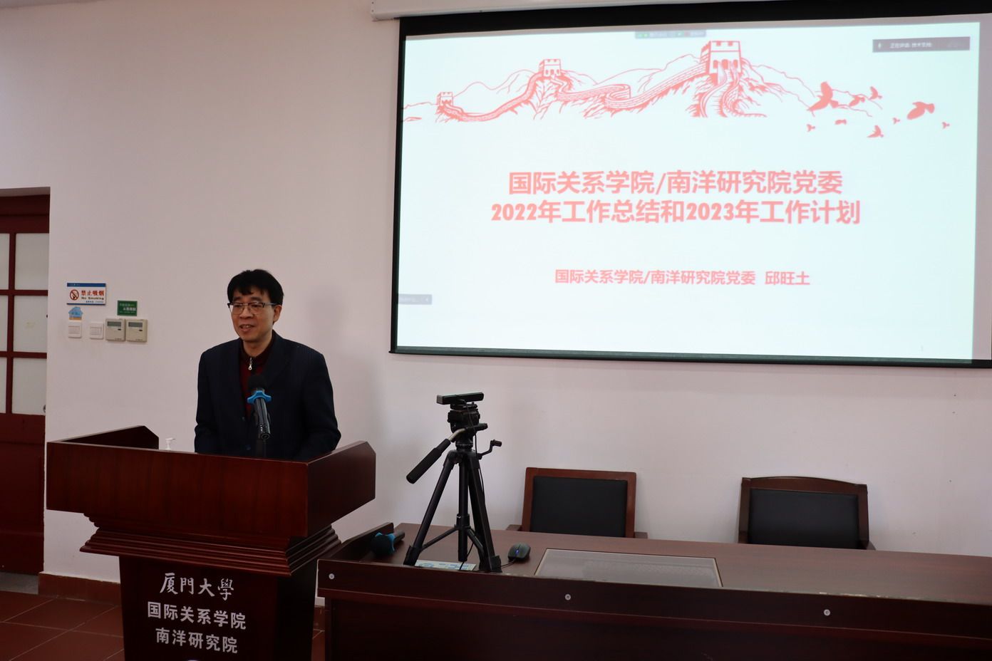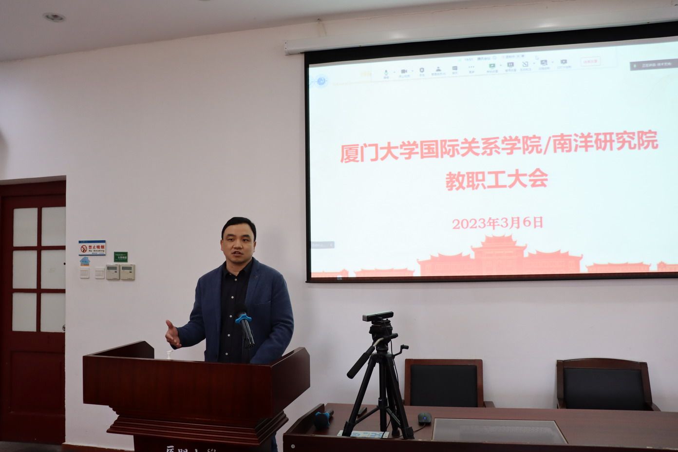 2023年3月6日上午,国际关系学院/南洋研究院2023年教职工大会在南安楼316会议室隆重召开。学院全体在职教职工参加会议,会议由学院党委书记邱旺土主持。