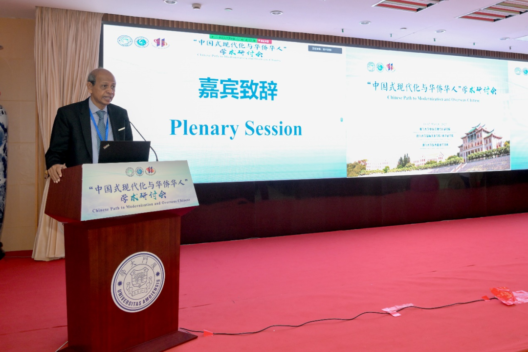 厦门大学副校长邓朝晖出席开幕式并指出,厦门大学因侨而立、由侨而兴。中国式现代化进程的推进与厦门大学的发展建设都离不开华侨华人的支持与贡献。厦门大学国际关系学院/南洋研究院副院长(主持工作)高艳杰表示,这样一场跨界研讨会,一定会碰撞出思想的火花,凝聚起浓厚的家国情怀。